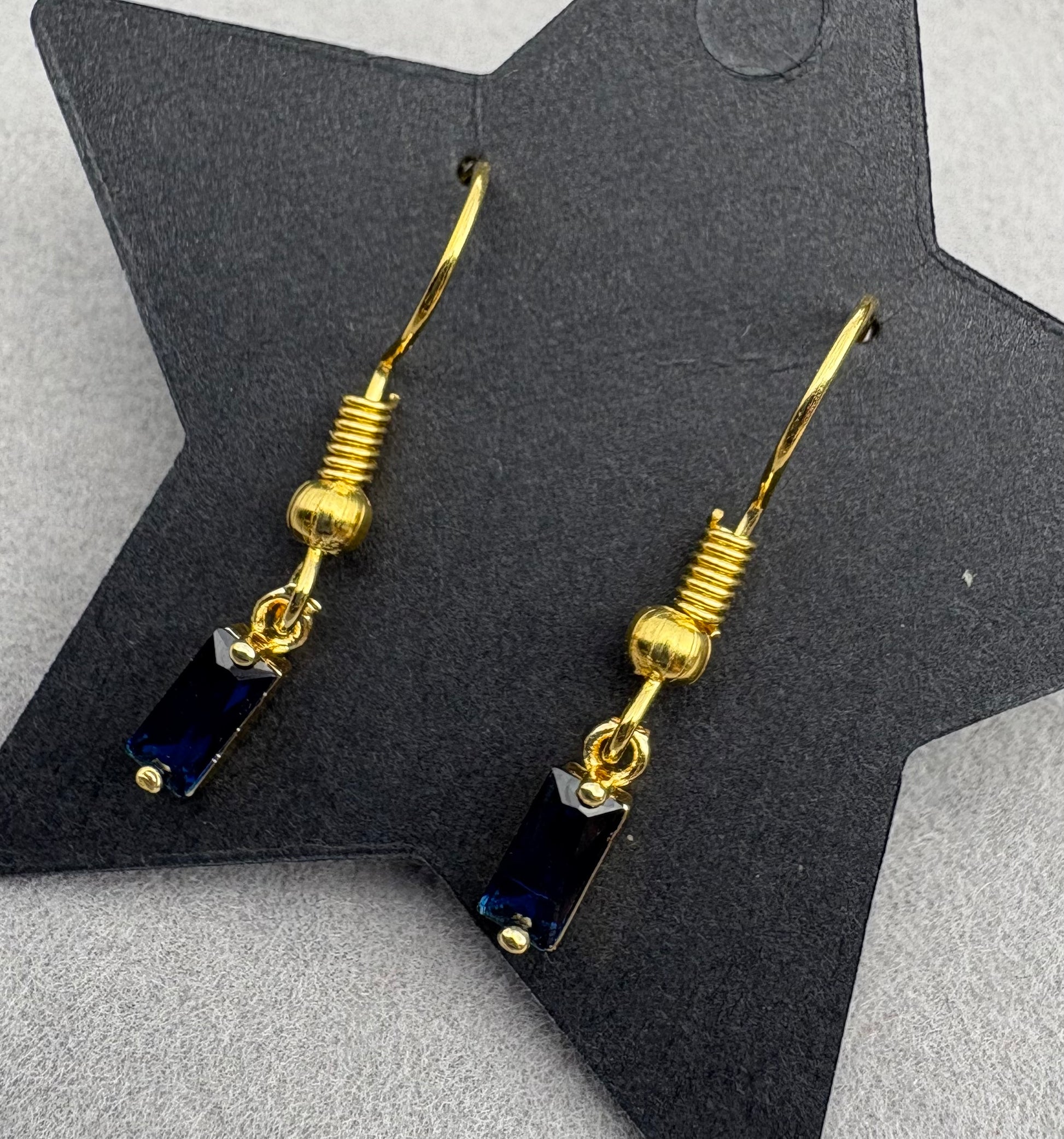 Dainty rectangle dark blue sparkle earrings in gold :)